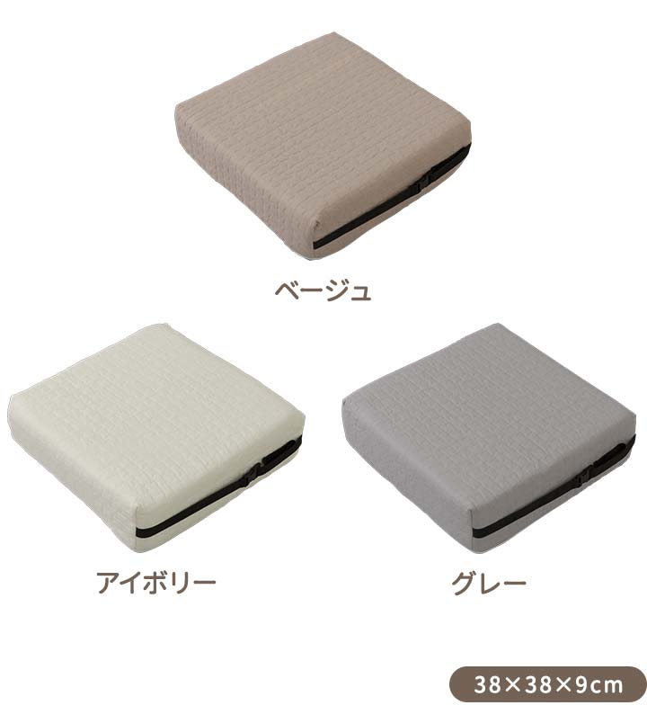 ブランド: モフア(mofua) カラー: ・ベージュ ・アイボリー ・グレー サイズ: 38×38×9cm(キルティング製 許容範囲+5%-3%) 材質: [カバー] 表:綿100% 中層:綿100% 裏面:ポリエステル100% [本体] 側地:ポリエステル100% 詰め物:ウレタンフォーム、ポリエチレンボード 特記事項: ・タンブル(乾燥機)乾燥はお避けください。